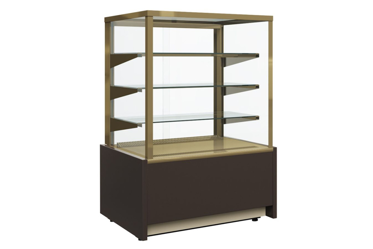 Кондитерская витрина Carboma ВХСв - 0,9д Cube с рабочими температурами от 6 до +12 °С подходит для продажи из нее слоек, булочек и другой выпечки.Окрашенная в шоколадно-золотой цвет, она делает выкладку выглядящей очень аппетитно.Всестороннее остекление обеспечивает покупателям хороший обзор.Эта небольшая витрина вместительна благодаря трем стеклянным полочкам.Равномерное охлаждение обеспечивается динамической вентиляцией.У холодильного оборудования электронное управление, есть температурный индикатор, встроенный мощный компрессор.Каждая полка имеет LED-подсветку.Благодаря минималистичному «угловатому» дизайну витрина отлично впишется в современный интерьер.