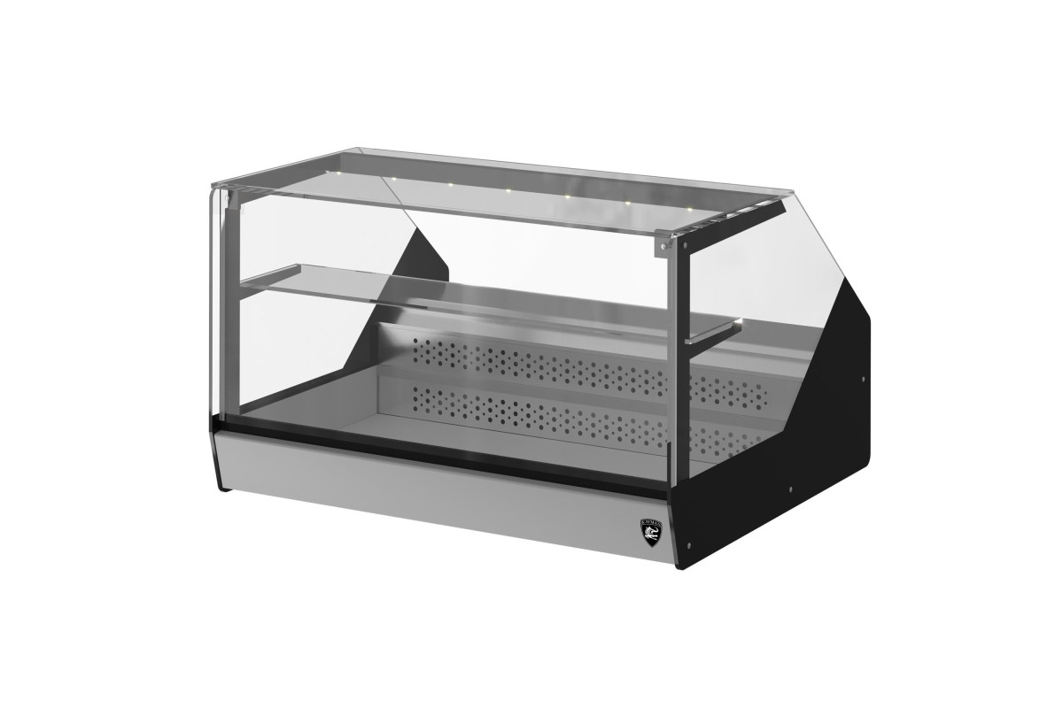 1000Х870Х610мм, t C -5…+5, корпус из стали, термоизоляция корпуса - пенополиуретан, экспозиционная поверхность из нержавеющей стали. LED подсветка, неохлаждаемая полка, прямое переднее стекло, ночные створки, гастроемкость 1/1х65-3 шт. Электронный блок управления Carel, хладагент R600a, тип охлаждения-статический.Витрины предназначены для эксплуатации в закрытом помещении с естественной вентиляцией при температуре окружающей среды от +12 до +25 и относительной влажности не более 60%. Экс. пл-дь 0,5м2. Вес 86кг.