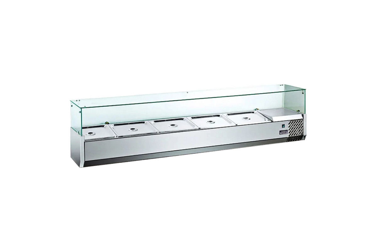Витрина настольная холодильная HURAKAN HKN-VRX1500/330 — это профессиональное решение для пиццерий, кафе и ресторанов, где критически важно сохранять свежесть и безопасность ингредиентов при их подготовке. Она решает задачу компактного и эффективного хранения начинок для пиццы, компонентов салатов, сыров, овощей и других полуфабрикатов непосредственно на линии сборки. Это позволяет повару работать быстро, без лишних движений к основному холодильнику, что ускоряет обслуживание и повышает гигиеничность рабочего места.