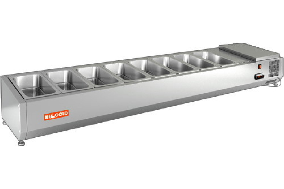 8Витрина охлаждаемая HICOLD VRTO 1835 1/4 – настольная модель для демонстрации и хранения ингредиентов с поддержанием температуры от +2°C до +7°C.