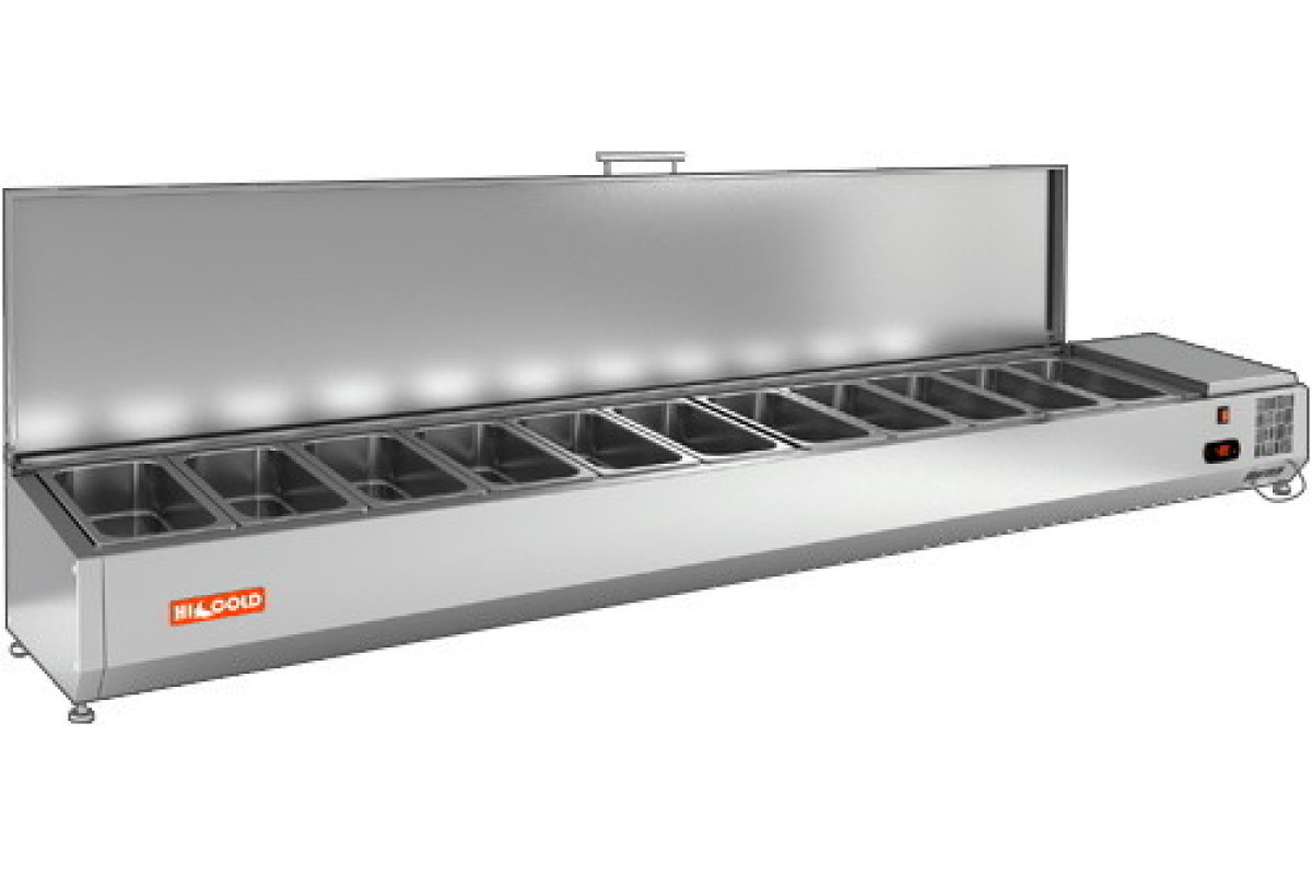 11Витрина охлаждаемая HICOLD VRTU 2360 1/4 – настольная гастрономическая витрина для хранения и демонстрации ингредиентов с удобной крышкой.