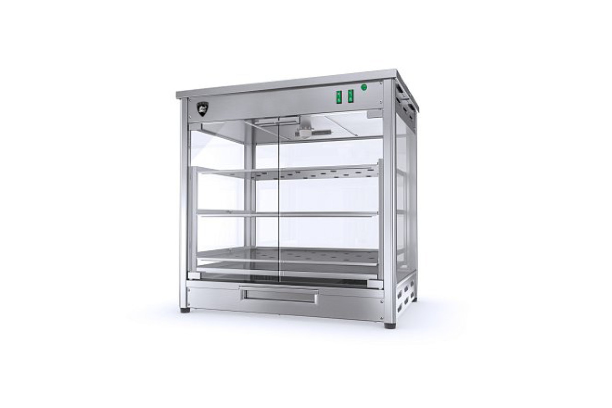Заказ от 5шт.640х460х640мм,1,2кВт, 220В, +30…+85С, терморегулятор спрятан в корпус. Полная загрузка витрины 9 кур, на одну полку помещается 3 тушки (весом до 1200 граммов каждая). Каркас витрины и полки для выкладки изготовлены из пищевой нержавеющей стали AISI430. Температурный режим в витрине регулируется терморегулятором, спрятанным в корпус витрины, с предустановкой.