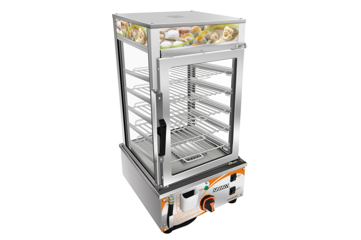 220Витрина тепловая настольная AIRHOT HWS-4 паровая предназначена для экспозиции булочек, тортов, пирогов и различных закусок. Витрина поддерживает температуру до +110 °C, что позволят сохранить вкус и мягкость продуктов. Стенки оборудования выполнены из изоляционного стекла, что позволяет лучше сохранять влажность и тепло в витрине, в то же время презентуя товар в лучшем виде. Оборудование оснащено подсветкой.Необходимая влажность гарантируется резервуаром с водой. Характеристики: