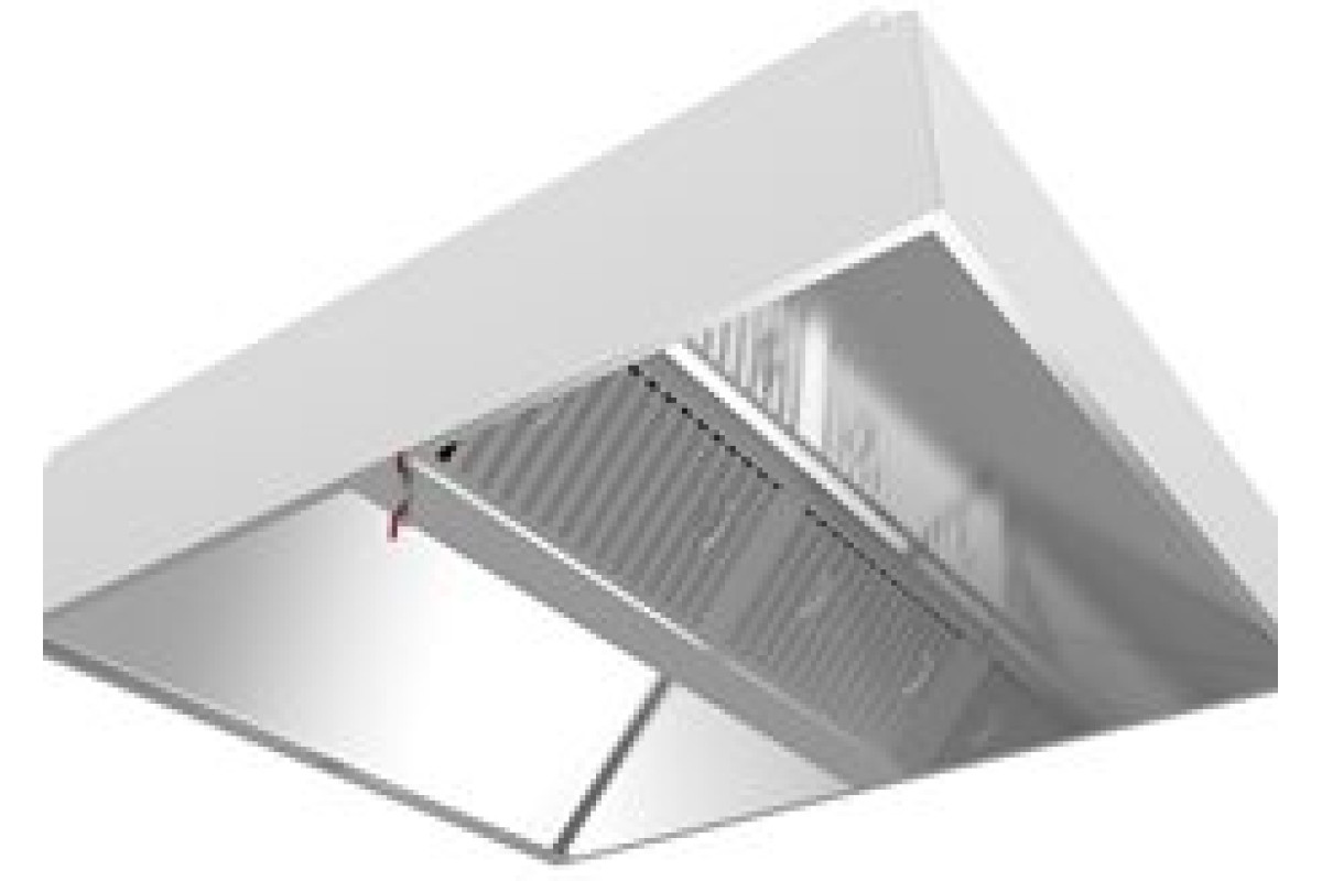2100х2800х400мм, Зонт вытяжной центральный в форме короба. Бескаркасный. Изготовлен из нержавеющей стали марки AISI 430 толщиной 0,8мм. С лабиринтными фильтрами (жироуловителями). Зонт поставляется в собранном виде.